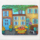 Färgfull, romantisk målningsscen för en vacker Provence-by och bord för två på gården med en trevlig flaska av Rosé vin av Lisa Lorenz på en Mouse Pad.