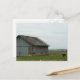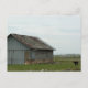 En gammal lada ligger mitten på en gård fält, medan en kalv från baby tittar på. Vykort har dubbelverb 16:8.