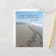 I vykorten visas två fotavtryck som skapar ett väg genom sanden på en strand i Kalifornien. Det visar den bibelverberna 16:9 som säger: "En mans hjärta planerar sin väg, men Herren styr sina steg."