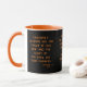 Den här tvåtonsskriften mugg har ett modernt vintage-teckensnitt med orange brev som visar bibelskriften "Proverbs 17:6 KJV" som är vänd över en svart bakgrund. Denna vers hänvisar till det sjuttonde kapitlet Bok i ordspråk som visar 6e-verbet i detta bibelcitat från Kung James-bibeln. Behållaren och fälgen är glaserade i motsvarande färg i 11 eller 15 uns stora mikrovågsugn och säker keramikkonstruktion av diskmaskiner.
