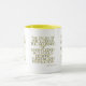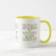 Den här tvåtonssymbolen mugg har ett chalgaljusteckensnitt med blå brev-gult-kontur som visar bibelskriptet "Proverbs 1:7 KJV" som är vänd över en vit bakgrund. Denna vers refererar till Bok i ordspråk 1:a kapitlet som visar 7:e-verbet i detta bibelcitattema från Kung James-bibeln. Behållaren och fälgen är glaserade i motsvarande färg i 11 eller 15 uns stora mikrovågsugn och säker keramikkonstruktion av diskmaskiner.