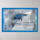 Den här skriften poster en bibelvers från ordspråk 27:8 i Kung James Authorized Version: "Som en fågel som avlider från sitt bo, så är det också en man som avlider från ställe." Bilden visar en nedsänkt tittar svart fågel på en räls vid Riverhills Park i Temple Terrace i Florida.