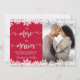Gravid av fotojulklapp i rött och vitt. Förväntar föräldrar! Modern, vit, snabbt, slitsat typografiskt skript "ju mer merrier"-kort dina lycklig-nyheter med familj och vänner i julhelgen. Ovanstående och grund vita snöflingan ram mot röd färg-bakgrund. Vid sidan av solnedgången visas bilden i rött vitt. Om du behöver hjälp eller matcha artiklar kontaktar du designern! Du kan anpassa designen genom att ersätta textmallen och fotot på ett (1) lodrät.