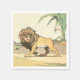 Lejon med en bushy man av hår, som framhärdar på den öppna öknen savanna i en bok-illustration från Benjamin Rabier. ⍾ prova våra andra butiker på Zazzle: