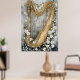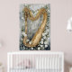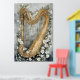 En prydnadsharpa omgiven av vita blommor. Här är några detaljer om detta instrument: