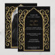 Prydd utsmyckad guldborder Foto Gotisk bröllopsinb Inbjudningar