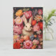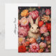 Vintage charm och vårens nyckfulla scen med en lekfull vit kanin som busar sig bland en livfull bukett vintage-inspirerade blommor.