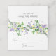 Det här är ett vikbart bordskort för att visa en gästs namn och bordnummer. Designen har en mängd olika vårblommor, inklusive gula narcisser, sötärt, maskrosor och grönska med ormbunke och murgröna.