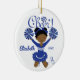 Prydnad för hejaklacksledare för afrikansk amerikan för blått- & vitjubel gullig. Lätt att personifiera med ditt namn & att datera. Besöka vårt shoppar för att beskåda denna prydnad i en stor variation av skolar färger & hårfärger
