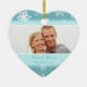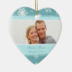 Anpassadet för prydnad för vinterbröllopfoto med ditt egna bröllopfoto och bröllop daterar i eleganta turkosblått och vit med det festliga snöflingormönster. En stilfull julgåva för familj och vänner eller att dekorera ditt julgran eller hem för helgdagar. Perfekten långt som minns din vinterbröllopsdag.