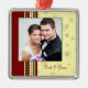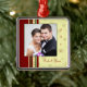 Anpassadet för prydnad för vinterbröllopfoto med ditt egna bröllopfoto och bröllop daterar i elegant rött, gult och grönt med det festliga snowflakemönster. En stilfull julgåva för familj och vänner eller att dekorera ditt julgran eller hem för helgdagar. Perfekten långt som minns din vinterbröllopsdag.