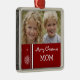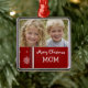 Anpassade för god julmammaprydnad med ditt egna familjfoto i elegant röda och för vit festlig snöflingor och randmönster. En stilfull julgåva för mamma denna julhelg.
