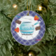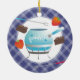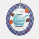 Ändra bakgrundsfärgen av denna prydnad för jul för det gulliga fonduepartyet kulinariska för retro älskare, kockar, kockar och foodies. Fonduekrukan med dela sig, jordgubbar och choklad med ginghambakgrund.