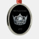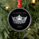 Julen smyckar visat i en runda formar med en nätt silverkrona, med text av Silver-Grå färg och svart färgbakgrund. Visat med det röda rimmed bandet och silver. Skräddarsy detta objekt med ditt personliga skönhetstävlingnamn, datera eller annat.