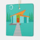 Denna prydnad för jul för huset för tecknaden för personligutrymmeåldern är riktiga en retro älskare dröm- kom. Den minimalist konstdesignen presenterar ett aquastenhus med stort, påfågelblåttfönster. Hänga från det atom- och att luta, exponerar det orange tak, en gul sputnik lätt fast tillbehör ytterdörren. Den tog paus röda ytterdörren med starburstdörrhandtaget är beautifully offset vid de vertikala gröna wood plankorna av den yttre entrywayen. En grå stenväg klipper över den pristine gräsmatta, som visas turkos i månsken. Bak huset pekar en ro av ett högväxt som är tunn, träd till turkoshimmlen och vitsilhouetten av en fullmåne. Fördriva inget folk är synligt, på en nattnågot liknande detta, det kitschy hus invånare är antagligen hållande ögonen på nyheternafootage för insida av astronauten. Skräddarsy motsatssidan med ett speciellt helgdagmeddelande!