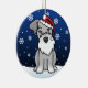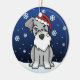 Gullig Schnauzerjulprydnad som dras i kawaiitecknad! Denna förtjusande hund aveln ha på sig en röd Santa hatt, och snöflingor faller lite varstans honom. Absolut bedårande, perfekt för hund älskare julaftonträd!