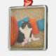 Den snarlika stora smokingkatten sitter upp på soffan och ser dig. Roligt och nyckfullt och fantasirikt.