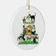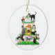 Original- konstdesign av katter som tycker om deras helgdagar på ett dekorerad kattträd eller condo av illustratören Carolyn McFann av studion för två spinnakatter. Purrfect gåvaidé för kattägare & fläktar.