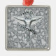 emblem för för Metallisk-look chiropracticängel/caduceus på bakgrund för helgdag för glittery julgranar för silver festlig. Gullig gåva för din favorit- kiropraktor!