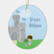 Denna har den keramiska prydnaden för gulliga pojke runda ett kungligt tema för Prince Charmig! Det finns ett grå färgslott i bakgrunden med tre blåttflaggor som upptill flyger. Längst ner finns det en brun haired Prince som ha på sig en guld- krona med en blåttjacka. På det slipat bredvid princen finns det en röd ros och en skydda. På rätsidan kan du lätt skräddarsy namn. Diagram vid Zenware designer på MyGrafico.com