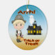 Prydnaden för rundan för den Halloween piratpojken beklär särdrag en blått-, vit- och bruntlutningbakgrund (anpassadet), en gullig tecknadpojke i en piratdräkt med en bus eller godispumpafullt av godisen som heading till ett spökat hus med ett vänligt spökeflyg över. Orangen & svarten stylized text är Arrh! Bus eller godis. Text är ställer in på baksidaen för att tillfoga ditt barns namn och för att datera. Perfekt minnessakgåva för Halloween! Att skräddarsy bakgrundsfärgen - ta bort bakgrunden avbildar - klicka blåtten "skräddarsy den" knäppas, - klicka på "xet" bredvid bakgrunden avbildar, då klickar på "redigerar" därefter "bakgrund", väljer din färg och klickar på "gjort".