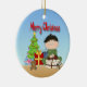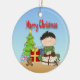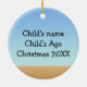 Prydnaden för rundan för julsmåbarnpojken beklär särdrag en blått- & bruntlutningbakgrund (anpassadet), en gullig tecknadpojke i gröna Footed Pajamas med vitsnöflingor. Det finns också en dekorerad julgran med gåvor & en nalle under den. Röd stylized text är god jul. Baksida presenterar en blått- & bruntlutningbakgrund (anpassade) och text för ditt barns namn, ålder och daterar. Perfekt minnessakgåva för jul! Att skräddarsy bakgrundsfärgen - ta bort bakgrunden avbildar - klicka blåtten "skräddarsy den" knäppas, - klicka på "xet" bredvid bakgrunden avbildar, då klickar på "redigerar" därefter "bakgrund", väljer din färg och klickar på "gjort".