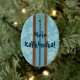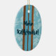 Lokaliserat på Oahus norr kust i Hawaii, är solnedgångstranden bekant för dess historia med berömda surfarear av femtiotalet och sixtiesna. Dessa surfarear och shapers inspirerade oss för att planlägga denna prydnad. Vi kombinerade wood randar för koaen och skrivev ut paneler av hibiskusblommor. För jul är vår hälsning "Mele Kalikimaka", men dessa prydnadar gör den underbara gåvaårsrundan, skräddarsy dem med ditt egna meddelande! Dessa designer kommer flera colorways.
