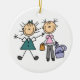 Prydnad för två stick figurflickor julgransprydnad keramik