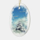 Denna helgdagprydnad är en vinterunderland! Snöstormen är över, och fred har försiktigt satt över denna älskvärda vinterplats. Det spruce träd har en filt av vitsnö, är himmlen ett djupblå med pösiga moln, och snö täckte grenar inramar bilden. Ska inte detta var älskvärt hänga på din julgran?