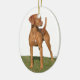 Ett vaket anseende för Viszla jakthund på en prydnad. Du kan ändra bakgrundsfärgen för att passa helgdag av ditt primat, genom att klicka Customize>edit>background.