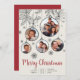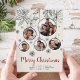 Festiva och unika fotokort med helgdag innehåller fem foton som visas som prydnadsföremål på en skisserad illustration av Julgran som är märkt med holly och snöflingor. "God jul" visas under i festive red calligraphy script lettering. Anpassa till din familj namn, året och namn längs grund.