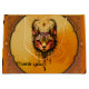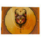 Ornamental elegans: A porträtt av en katt. Det uttrycksfulla röda ögonen fångar omedelbart öga. Kattens pjäs dekoreras med ett känsligt, dekorativt mönster som påminner om delikat, böjt linjer och blommigt motiv och ger bilden en elegant. Paletten i färg är till övervägande del varm, med skarp orange och skakande guld-toner som utstrålar värme och häftighet.