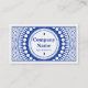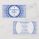 En visitkortsmall med en originaldesignad design. En cirkulär panel på framsidan för företaget namn och företagstyp som är dekorerad med cirkulära textsymboler omgivna av en dekorativ design. Kortets baksida behåller den yttre delen av utformningen, men med ett större område i mitten för namn, rubrik och andra kontaktuppgifter. Lämpligt för en mängd olika företag kan också anpassas för använda som presentkortsvoucher eller -token. Att ha en stil som påminner något om sedlar eller leksak pengar.