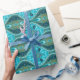 En dekorationsform i tealer, blues och bruna.
