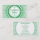 En visitkortsmall med en originaldesignad design. En cirkulär panel på framsidan för företaget namn och företagstyp som är dekorerad med cirkulära textsymboler omgivna av en dekorativ design. Kortets baksida behåller den yttre delen av utformningen, men med ett större område i mitten för namn, rubrik och andra kontaktuppgifter. Lämpligt för en mängd olika företag kan också anpassas för använda som presentkortsvoucher eller -token. Att ha en stil som påminner något om sedlar eller leksak pengar.