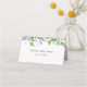 Detta är ett vikbart platskort för att visa en gästs namn och bordnummer. Designen har en mängd olika vårens vildblommor, inklusive gula narcisser, sötärt, maskrosor och ormbunks- och murgrönsgrönska.