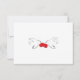 Prylar handskrivet bröllops-svarskort med en minimalistisk handritad snörig ramdesign och två fåglar med körsbär på baksidan. Dessa svarskort finns i färgschemat svart, vitt och rött.