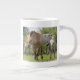 Przewalskis Horse eller Takhi (Equus ferus przewalskii) i viltlevande centrum i Hortobagys nationalpark. Mare med bete av föl, Pentezug Puszta, Ungern | Martin Zwick / DanitaDelimont.com