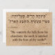 Detta vackra kort är tryckt på bakgrunden från bibliska stil med antikkort, med Psalm 104:13 på både hebreiska (Psalms originalspråk) och engelska (Kung James Version). Det är en vacker souvenir för varje bibel älskare, som kan användas som ett inramat mini-poster, eller som ett stort och meningsfullt hälsning-kort.