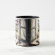 Kaffe mugg med inspirerande citattecken skildrar ett bord med en öppen bibel framför ett fönster. Den har en uppmuntrande bibelpsalm 119:105, "Din ord är en lampa för mina fötter, en lampa på min väg."