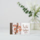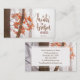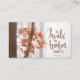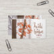 Affärskortet med inspirationcitattecken skildrar ett enkelt naturfoto med ett gren av bränd orange och rött höst löv i en skog av träd. Den innehåller en del av Bible Verse Psalm 147:3, "Han läker den brutna hjärtan". Foto av Simon Berger.