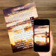 Psalm 23 soluppgångskors begravningsminneskort . En vacker siluett av ett solnedgångskors i bakgrunden med enkel vit text. Firande av livets-mall inbjudningar—dessa inbjudningar kan enkelt anpassas med ditt favoritfoto och bibelvers.