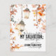 Med vykort med inspirationcitattecken visas en höstfärgskonstruktion med fallande färgad löv runt hängande ljus. Det är en uppmuntrande bibelsallad 27:1, "Herren är mitt ljus och min räddning: vem ska jag vara rädd för?" Hälsning, bön kan vara personlig eller raderas för ett handskrivet meddelande.