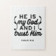 Minimalist yet powerful Bible verse typography based on Psalm 91:2, declaring “He is my God and I trust Him.” Perfect for Christian apparel, church merch, faith stickers, and home wall art.