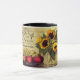 Det inspirerande citatet kaffe mugg skildrar ett vackert liv med ett vas av solblommor och fruktskål. Den innehåller en del av Bible Verse Psalm 95:2, "Let us kom into his present with thanksgiving" *