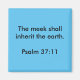 Nyckelordet på magnetens psalm är "meek". Översatt som ödmjuk, lugn, patientattribut som vi är i desperat behov av i dag. Det finns magneter i andra stilar, färg och storlekar på Zazzle från vår BsApparelplus-butik. Kolla vår "Just Magnets"-samling för fler magneter och vår "Andlig Awakening Collection" för fler artiklar och presenter från andlig. Tack för att du shoppade med oss!