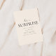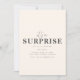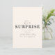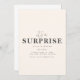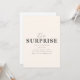 Den här mall för överraskningsfestinbjudan har en varm, beige bakgrund som sätter en subtil, elegant ton för evenemanget. Orden "Det är en överraskning!" visas framträdande i ett lekfullt, skrivet teckensnitt, vilket ger en känsla av spänning och förväntan till inbjudan. Under denna livliga rubrik finns ett avsett område för festdetaljer, inklusive datum, tid, plats och eventuella särskilda instruktioner för att hålla överraskningen intakt. Den övergripande designen uppnår en perfekt balans mellan roligt och sofistikation, vilket gör den till ett idealiskt val för alla överraskningsfiranden.