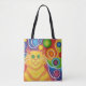 Groovy baby! En gult och orange strimlade katt med snurrande whisky och en psykodelisk regnbågsmönstrad bakgrund. T-shirt med en design som gör att du kan anpassa dig till din egen text, bilder och dina idéer. Bilden skapades från en digitalt utökad färgpenna teckning.