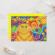 Groovy bebis! Inbjudan med en rosa randig katt med att virvla runt whiskers och en psychedelic regnbåge mönstrade bakgrund. Rosor, blått, en grönt, lilor och en gultanpassadedesign för att dig ska personifiera med dina egna text, bilder och idéer. Texten kan lätt ändras genom att använda den förutsatt att mallen, eller att klicka skräddarsy "den" knäppas för att göra mer ytterligare förändringar. Förhöjt färgat för original ett digitalt ritar teckningen av Jess Perry.