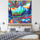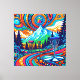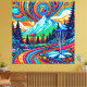 Ai art som skildrar en färglös diskbana i bergen och gräs i träd i blått, orange och grönt.